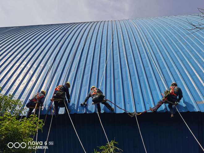 1.除锈彻底性把控:彩钢瓦波峰、波谷及铆钉根部易藏积锈迹,喷砂 / 打磨时易出现 “死角漏除”,且过度打磨可能损伤瓦面基板,影响结构强度。